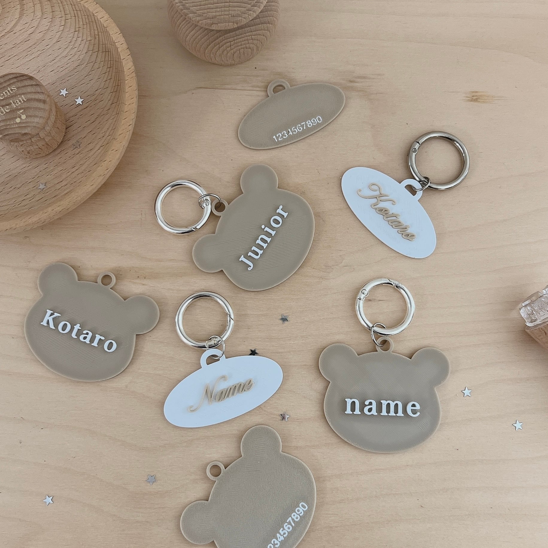 お散歩用の首輪に付けたり、バッグチャームとして飾ったり、プレゼントにも喜ばれるアイテムです。