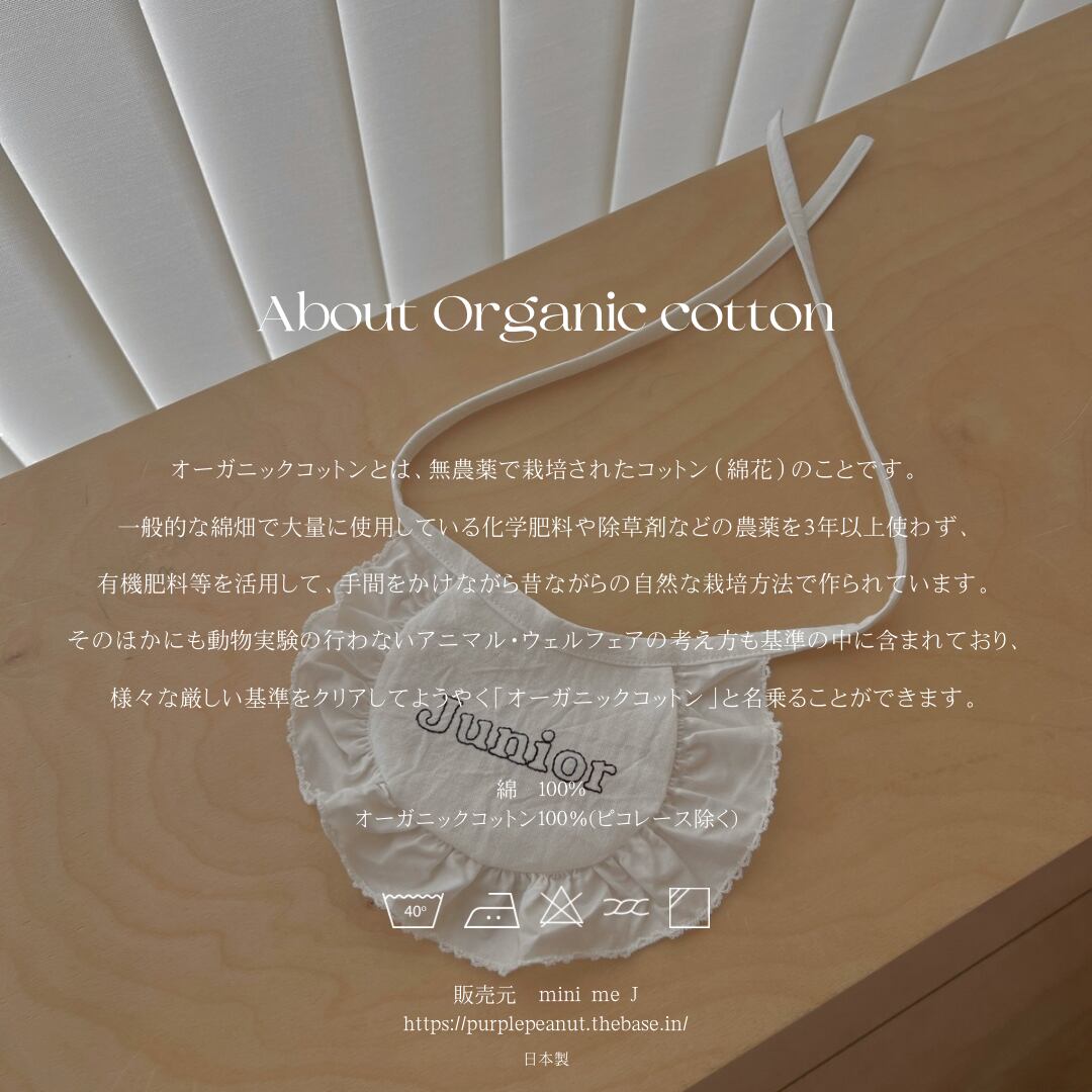 オーガニックコットン100%(日本製)、ピコレース コットン100%(中国製)